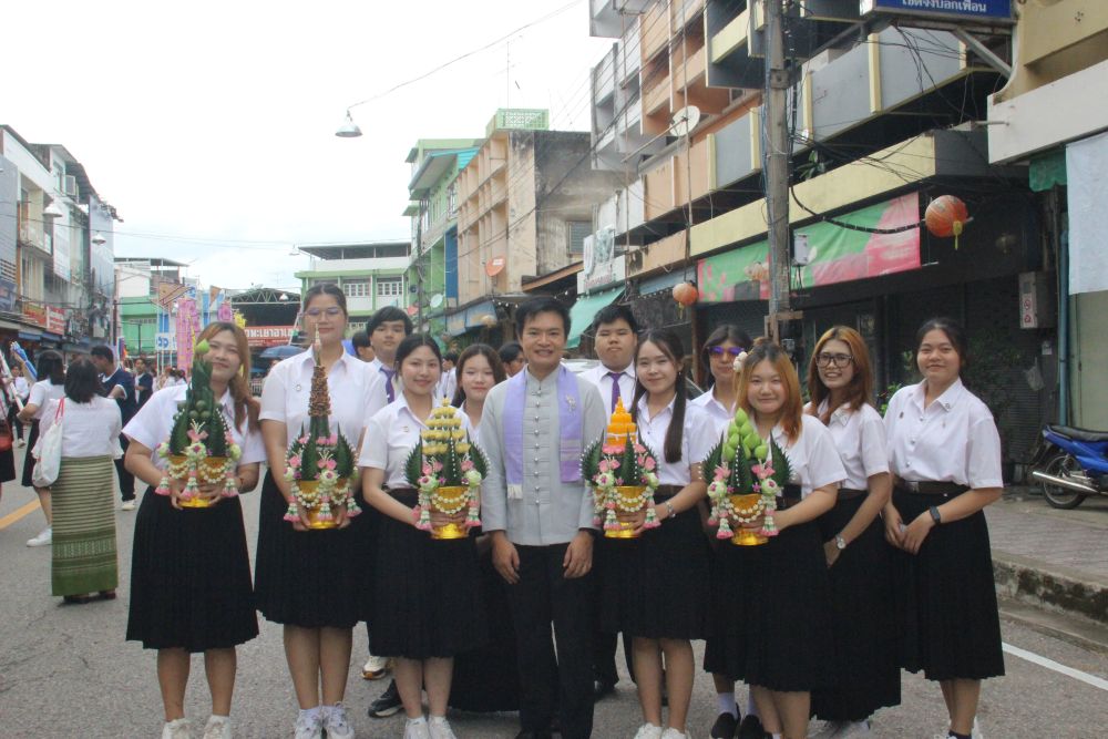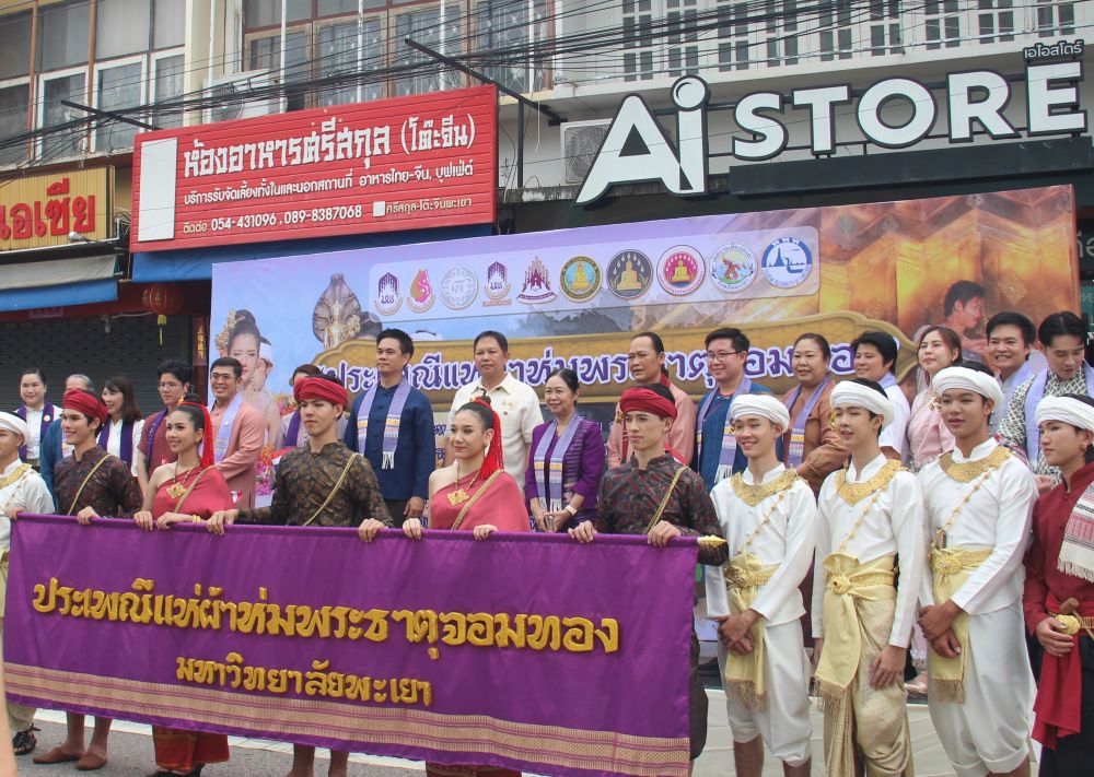 คณะสหเวชศาสตร์ มหาวิทยาลัยพะเยา เข้าร่วมประเพณีแห่ผ้าห่มพระธาตุจอมทอง มหาวิทยาลัยพะเยา ประจำปี 2568 ในวันเสาร์ที่ 26 กรกฎาคม 2568 ผู้ช่วยศาสตราจารย์ ดร.สิทธิพร สุวรรณมิตร ฝ่ายคุณภาพนิสิตและกิจการพิเศษ คณะสหเวชศาสตร์ พร้อมด้วยบุคลากรและนิสิต คณะสหเวชศาสตร์ เข้าร่วมโครงการ “ประเพณีห่มผ้าพระธาตุจอมทอง มหาวิทยาลัยพะเยา ประจำปี 2568” โดยได้รับเกียรติจาก รองศาสตราจารย์ ดร.สุภกร พงศบางโพธิ์ อธิการบดีมหาวิทยาลัยพะเยา เป็นประธานในพิธีและกล่าวเปิดโครงการฯ ซึ่งในครั้งนี้เป็นการจัดโครงการต่อเนื่องมาเป็นครั้งที่ 10 โดยคณะสหเวชศาสตร์ได้นำเครื่องสักการะตามแบบล้านนาเข้าร่วมขบวนแห่ผ้าห่มพระธาตุ จากบริเวณศาลหลักเมือง จังหวัดพะเยาไปยังวัดศรีโคมคำ พระอารามหลวง และโบราณสถานพระธาตุจอมทอง และร่วมทำบุญพร้อมเลี้ยงโรงทานของว่างเพื่อแจกจ่ายให้แก่พุทธศาสนิกชนและประชาชนที่มาร่วมประเพณ่แห่ผ้าห่มพระธาตุฯ ในครั้งนี้