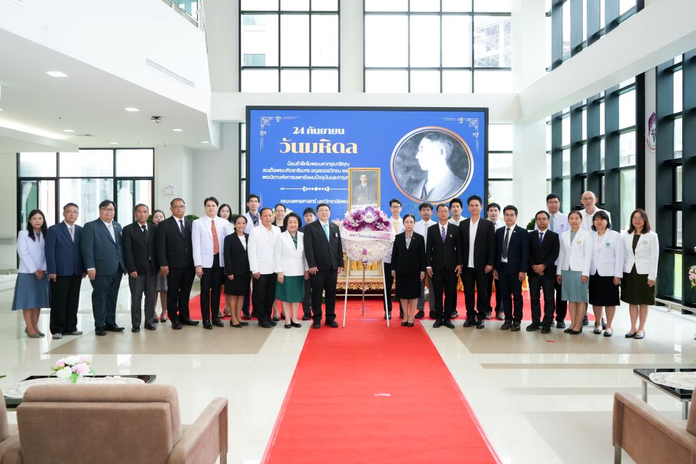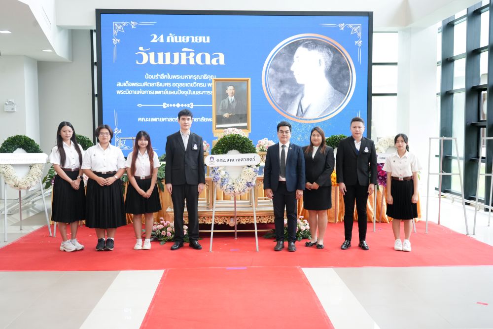 คณะสหเวชศาสตร์ ร่วมพิธีวางพวงมาลาและถวายราชสักการะ เนื่องในวันมหิดล ประจำปี 2568 เมื่อวันพุธที่ 24 กันยายน 2568 ผู้ช่วยศาสตราจารย์ ดร.พุทธิพงษ์ พลคำฮัก คณบดีคณะสหเวชศาสตร์ นำทีมบุคลากรและนิสิคคณะสหเวชศาสตร์ เข้าร่วมในพิธีวางพวงมาลาและถวายราชสักการะ เนื่องในวันคล้ายวันสวรรคตของสมเด็จพระมหิตลาธิเบศร อดุลยเดชวิกรม พระบรมราชชนก พระบิดาแห่งการแพทย์แผนปัจจุบันและสาธารณสุขไทย พร้อมด้วยคณะผู้บริหาร บุคลากร และตัวแทนนิสิต อีก 6 คณะในกลุ่มวิทยาศาสตร์สุขภาพ มหาวิทยาลัยพะเยา เข้าร่วมพิธีวางพวงมาลาดังกล่าว ณ คณะแพทยศาสตร์ โรงพยาบาลมหาวิทยาลัยพะเยา ทั้งนี้ได้รับเกียรติจาก รองศาสตราจารย์ ดร.สุภกร พงศบางโพธิ์ อธิการบดีมหาวิทยาลัยพะเยา เป็นประธานในพิธีวางพวงมาลาและถวายราชสักการะ อีกทั้งกล่าวถวายราชสดุดี เทิดพระเกียรติคุณน้อมรำลึกในพระมหากรุณาธิคุณอันหาที่สุดมิได้ การจัดพิธีในครั้งนี้ มีวัตถุประสงค์เพื่อให้บุคลากรและนิสิตได้น้อมรำลึกถึงพระมหากรุณาธิคุณของพระองค์ท่าน และตระหนักถึงความสำคัญของการรักษาและสืบทอดพระราชปณิธาน เพื่อนำไปสู่การพัฒนาการศึกษาและสาธารณสุขของประเทศให้เจริญก้าวหน้าต่อไป