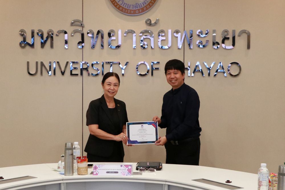 คณะสหเวชศาสตร์ มหาวิทยาลัยพะเยา ขอแสดงความยินดีกับบุคลากรที่ได้รับรางวัล อาจารย์ที่ปรึกษาผลงานบูรณาการความรู้สู่นวัตกรรมทางวิชาชีพ ประจำปีการศึกษา 2568 คณะสหเวชศาสตร์ มหาวิทยาลัยพะเยา ขอแสดงความยินดีกับบุคลากรที่ได้รับรางวัล อาจารย์ที่ปรึกษาผลงานบูรณาการความรู้สู่นวัตกรรมทางวิชาชีพ ประจำปีการศึกษา 2568 ในพิธีมอบรางวัลเกียรติบัตรเชิดชูเกียรติ ในวันที่ 29 ตุลาคม 2568 ณ ห้องประชุมบวนรัตนประสิทธิ์ ชั้น 2 อาคารสำนักงานอธิการบดี มหาวิทยาลัยพะเยา โดยในครั้งนี้บุคลากรคณะสหเวชศาสตร์ ได้รับรางวัล 7 รางวัล ได้แก่ ดร.ฟ้า เชื้อหงส์ทอง และ ดร.พริน คำเส็ง ได้รับรางวัลอาจารย์ที่ปรึกษา ผลงานด้านนวัตกรรมเพื่อพัฒนาหรือแก้ปัญหาให้กับชุมชน/สังคม ผศ.ดร.สมโภช เสาร์อิน และ ผศ.ดร.สาวิตรี นะงอลา ได้รับรางวัลอาจารย์ที่ปรึกษา ผลงานด้านการประยุกต์ใช้เทคโนโลยีหรือปัญญาประดิษฐ์ ผศ.ดร.สาวิตรี นะงอลา ได้รับรางวัลอาจารย์ที่ปรึกษา ผลงานด้านการส่งเสริมความเป็นผู้ประกอบการยุคดิจิทัล ผศ.ดร.สิทธิพร สุวรรณมิตร ดร.ฟ้า เชื้อหงส์ทอง ดร.พริน คำเส็ง และ ดร.เดช ดอกพวง ได้รับรางวัลอาจารย์ที่ปรึกษา ผลงานด้านการส่งเสริมความฉลาดรู้ทางสุขภาพ