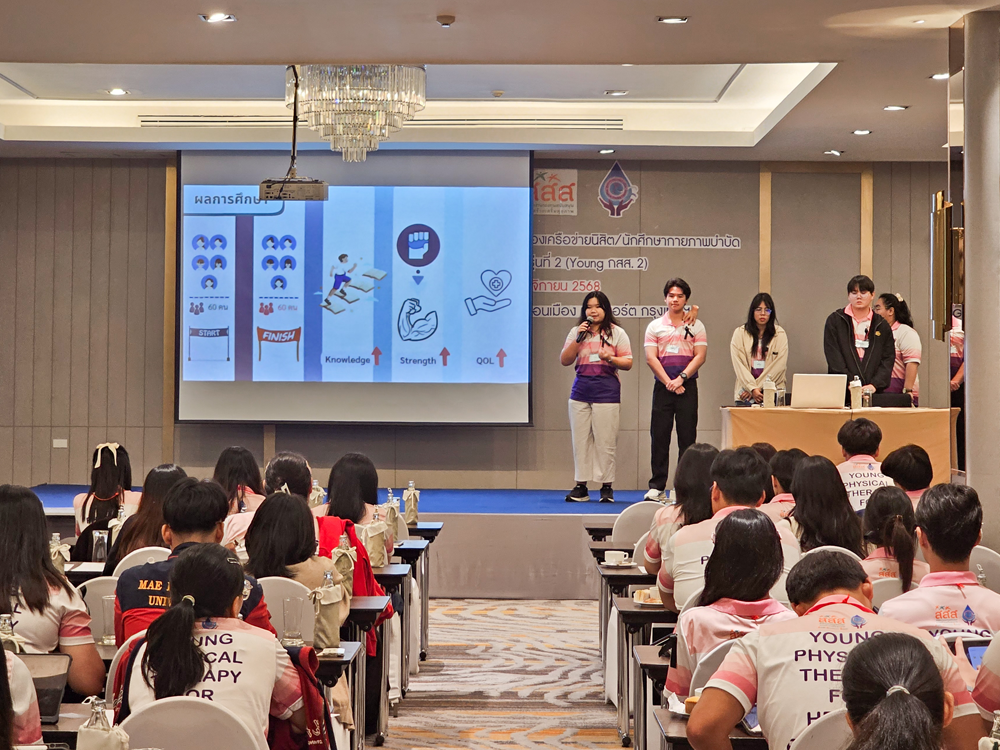 ตัวแทนนิสิตกายภาพบำบัด คณะสหเวชศาสตร์ มหาวิทยาลัยพะเยา เข้าร่วมโครงการ “Young กสส. รุ่นที่ 2” เพื่อเสริมศักยภาพผู้นำด้านสุขภาพในระดับประเทศ สาขาวิชากายภาพบำบัด คณะสหเวชศาสตร์ มหาวิทยาลัยพะเยา ส่งตัวแทนนิสิตสาขากายภาพบำบัด ชั้นปีที่ 4 ประกอบด้วย นางสาวปิยะปาณ พินิจชัย นางสาวปพิชญา วิสุทธิ์เมธากุล นางสาวกิตติกาญจน์ มั่นคง นายศุภณัฐฐ์ ผลสินธุ์ และนายเสฎฐวุฒิ โพธิกิจ ในการเข้าร่วมโครงการพัฒนานิสิตนักศึกษานักกายภาพบำบัดสร้างเสริมสุขภาพ เพื่อชุมชนไทยเข้มแข็ง (Young กสส. รุ่นที่ 2) ซึ่งเป็นเวทีบ่มเพาะศักยภาพนิสิตนักศึกษากายภาพบำบัดจากสถาบันผลิตบัณฑิตสาขาวิชากายภาพบำบัดทั้ง 17 สถาบันชั้นนำทั่วประเทศ โดยจัดขึ้นระหว่างวันที่ 22–23 พฤศจิกายน 2568 ณ โรงแรมอมารี ดอนเมือง แอร์พอร์ต กรุงเทพมหานคร ในการนี้ ตัวแทนนิสิตจากมหาวิทยาลัยพะเยาได้เสนอ โครงการสร้างเสริมสุขภาพ “Strong Hands Strong Life” ซึ่งเป็นโครงการที่สะท้อนบทบาทและความสำคัญของวิชาชีพกายภาพบำบัดในการดูแลผู้ป่วย โดยเน้นการสร้างเสริมความแข็งแรงของกล้ามเนื้อมือ เพื่อสนับสนุนประสิทธิภาพการปฏิบัติงาน ลดความเสี่ยงต่อการบาดเจ็บ และเตรียมความพร้อมของนิสิตให้ก้าวสู่การเป็นนักกายภาพบำบัดที่มีความสามารถและความรับผิดชอบต่อสังคม การเข้าร่วมโครงการครั้งนี้ไม่เพียงเป็นการแสดงศักยภาพของนิสิตเท่านั้น แต่ยังเป็นสัญลักษณ์แห่งความมุ่งมั่นของคณะสหเวชศาสตร์ มหาวิทยาลัยพะเยา ในการพัฒนาผู้เรียนสู่การเป็นกำลังสำคัญของวิชาชีพกายภาพบำบัด และผู้ขับเคลื่อนสุขภาพของชุมชนไทยในอนาคตอย่างมั่นคงและยั่งยืน