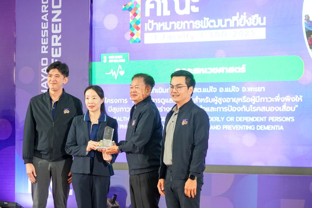 คณะสหเวชศาสตร์ มหาวิทยาลัยพะเยา ชูโมเดลสุขภาวะผู้สูงอายุยั่งยืน คว้ารางวัล “ระดับเหรียญทอง” จากนิทรรศการ "1 คณะ 1 SDG" ในการประชุมวิชาการระดับชาติ “พะเยาวิจัย ครั้งที่ 15” คณะสหเวชศาสตร์ มหาวิทยาลัยพะเยา สร้างความภาคภูมิใจในระดับสถาบัน ด้วยการได้รับ รางวัลระดับเหรียญทอง จากกิจกรรมประกวดนิทรรศการ “1 คณะ 1 SDG” ในการประชุมวิชาการระดับชาติ “พะเยาวิจัย ครั้งที่ 15” ภายใต้หัวข้อ “SDG Global Connect : Learning from Best Practices” เมื่อวันที่ 27 มกราคม 2569 ผู้ช่วยศาสตราจารย์ ดร.พุทธิพงษ์ พลคำฮัก คณบดีคณะสหเวชศาสตร์ พร้อมด้วยคณะผู้บริหาร คณาจารย์และเครือข่ายนวัตกรพื้นที่ อำเภอแม่ใจ เข้าร่วมพิธีเปิดกิจกรรมประกวดนิทรรศการ "1 คณะ 1 SDG" และนิทรรศการ "พะเยา: ชุมชนต้นแบบนวัตกรรมเพื่อการพัฒนาที่ยั่งยืน" ภายใต้ธีม "SDG Global Connect: Learning from Best Practices" ณ อาคาร 99 ปี พระอุมาลีคุณูปมาจารย์ มหาวิทยาลัยพะเยาและในปีนี้ โครงการ 1 คณะ 1 เป้าหมายการพัฒนาที่ยั่งยืน (SDG) คณะสหเวชศาสตร์ ประจำปีงบประมาณ 2568 เรื่อง “การจัดการดูแลสุขภาพสำหรับผู้สูงอายุหรือผู้มีภาวะพึ่งพิง เพื่อสุขภาวะที่ดีและป้องกันสมองเสื่อม” โดยมี ผศ.ดร.อรรจน์มน ธรรมไชย เป็นผู้รับชอบโครงการ ณ พื้นที่ดำเนินการ: รพ.สต.แม่ใจ จ.พะเยา ได้รับรางวัลระดับเหรียญทอง โดยได้รับเกียรติจาก ศาสตราจารย์พิเศษอรรถพล ใหญ่สว่าง นายกสภามหาวิทยาลัยพะเยา เป็นผู้มอบ โดยโครงการดังกล่าว เน้นการสร้างนวัตกรรมเพื่อส่งเสริมสุขภาวะและ ป้องกันภาวะสมองเสื่อม ในพื้นที่จังหวัดพะเยา ผ่านกลยุทธ์ "สร้างคน สร้างระบบ เชื่อมภาคี" ซึ่งมีการฝึกอบรมผู้ดูแลเฉพาะทางเพื่อยกระดับทักษะการปฏิบัติงานอย่างมีประสิทธิภาพ ตัวโครงการใช้วิธีการดูแลแบบองค์รวมที่ครอบคลุม 5 มิติหลัก ได้แก่ ด้านร่างกาย จิตใจ สังคม สิ่งแวดล้อม และนวัตกรรมการป้องกันสมองเสื่อม เช่น การฝึกแบบ Dual-Task และเครื่องมือกระตุ้นปัญญา ผลการดำเนินงานแสดงให้เห็นถึงความสำเร็จที่วัดผลได้จริง ทั้งในแง่ของ คะแนนความจำที่ดีขึ้น และความคุ้มค่าของการใช้จ่ายงบประมาณผ่านตัวเลขผลตอบแทนทางสังคมที่ชัดเจน นอกจากนี้ยังถือเป็นโมเดลต้นแบบที่ช่วยขับเคลื่อน เป้าหมายการพัฒนาที่ยั่งยืน (SDG) เพื่อสร้างระบบการดูแลสุขภาพระดับท้องถิ่นที่เข้มแข็งและยั่งยืนต่อไป ในโอกาสเดียวกัน คณะสหเวชศาสตร์ยังได้รับเกียรติใน พิธีมอบป้ายพื้นที่การเรียนรู้ Re-inventing University ภายใต้โครงการพัฒนาความเป็นเลิศของสถาบันอุดมศึกษาและการพัฒนากำลังคนขั้นสูง โดยมี รศ.ดร.สุภกร พงศบางโพธิ์ อธิการบดีมหาวิทยาลัยพะเยา เป็นผู้มอบ ทั้งนี้ คณะสหเวชศาสตร์ได้รับม