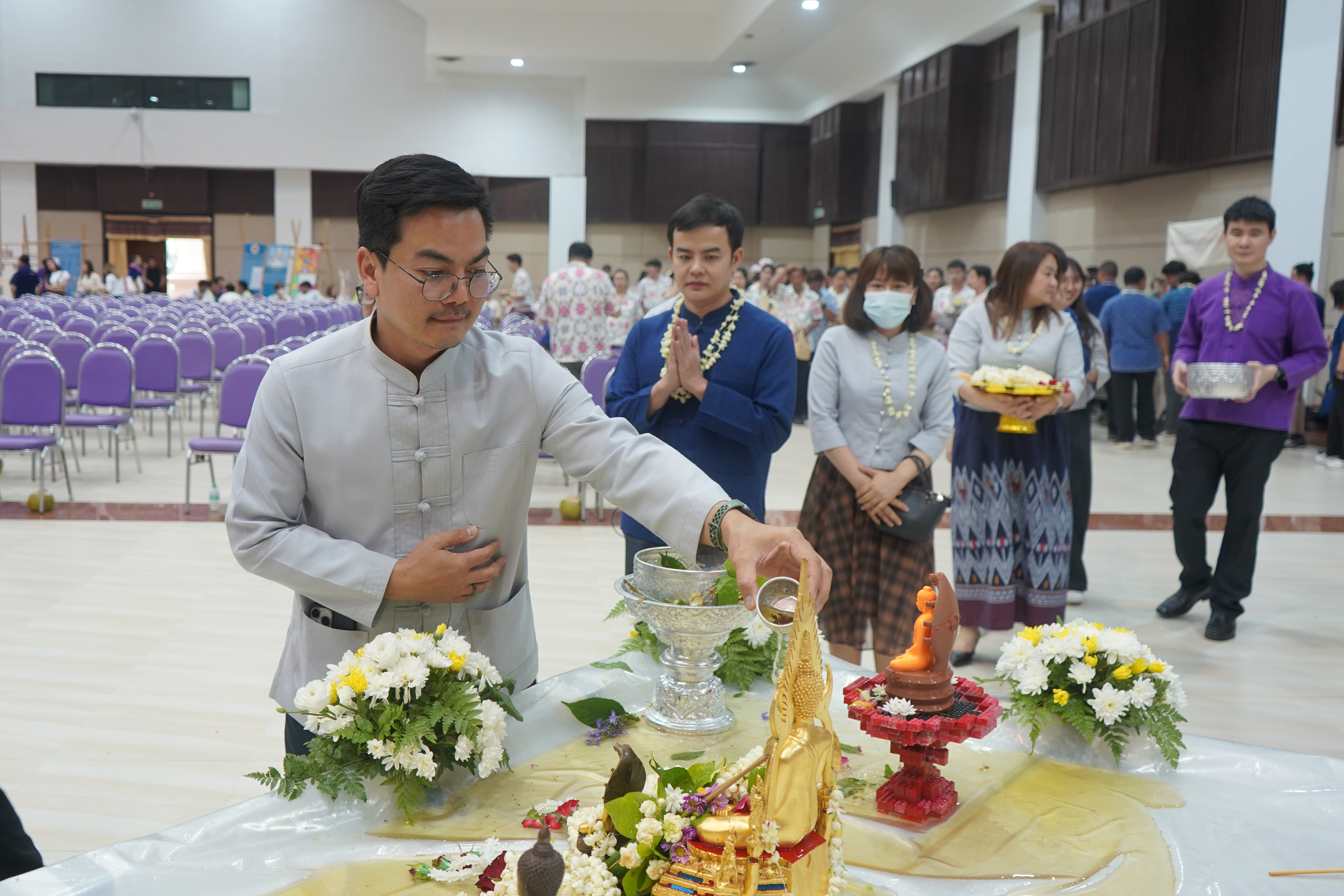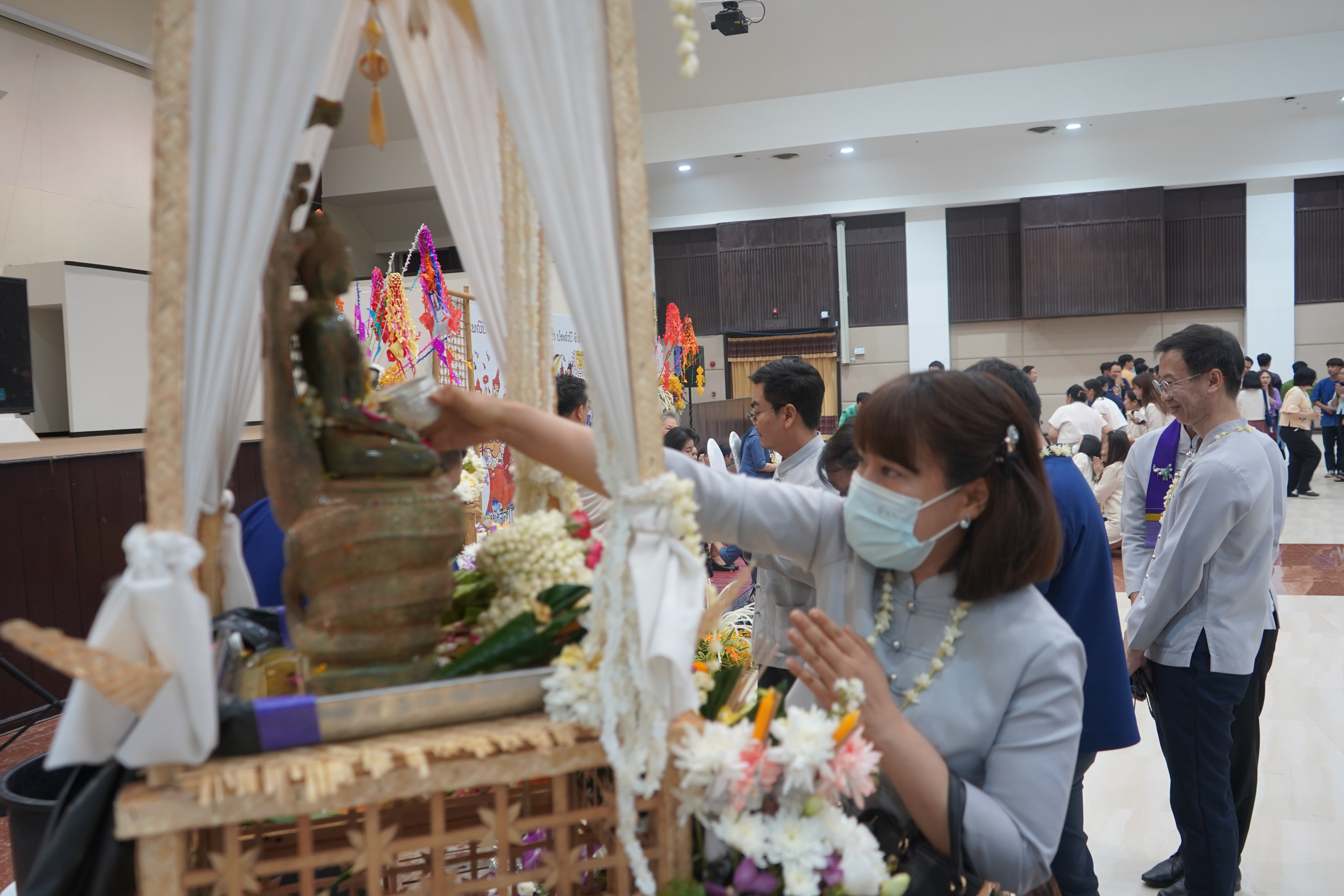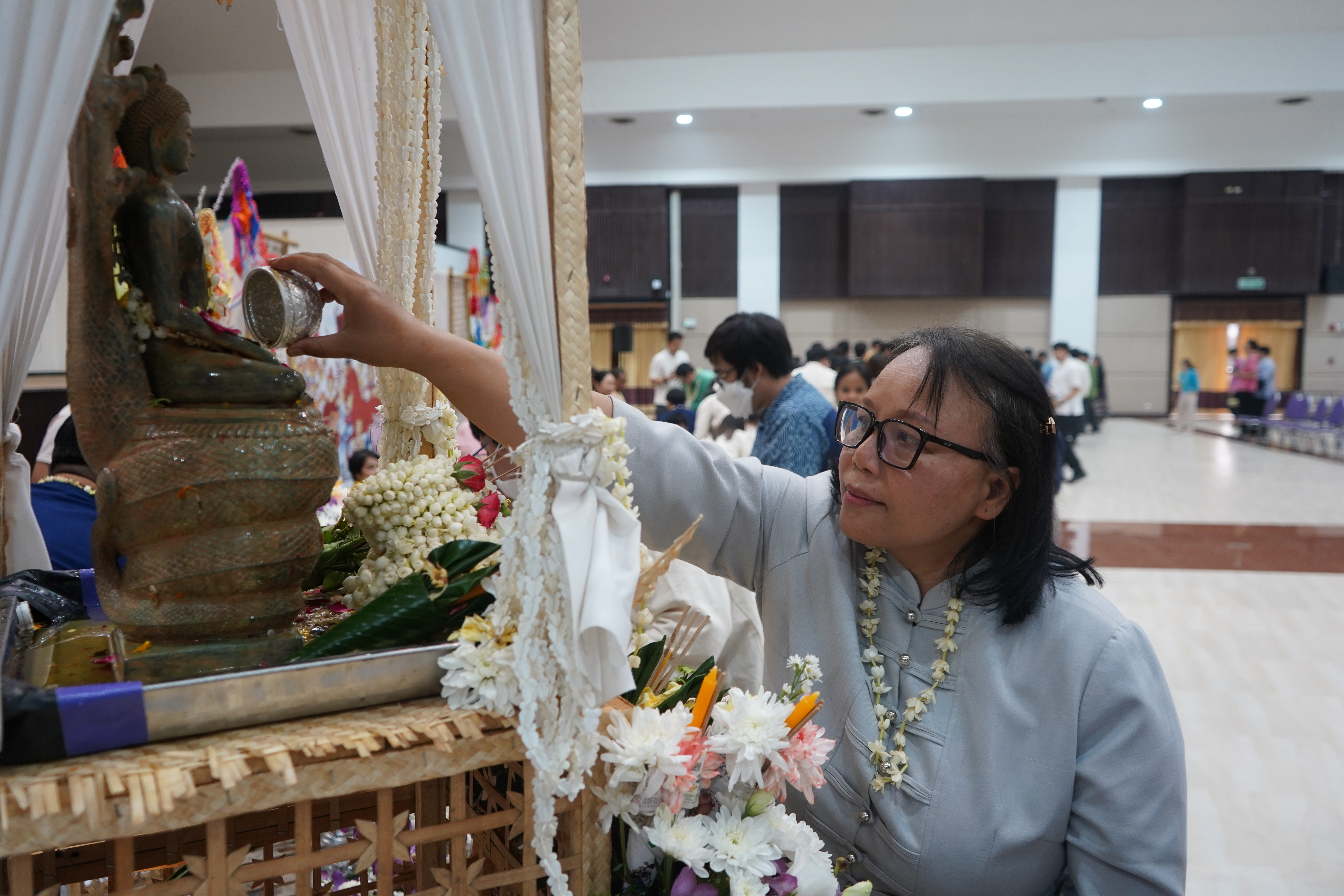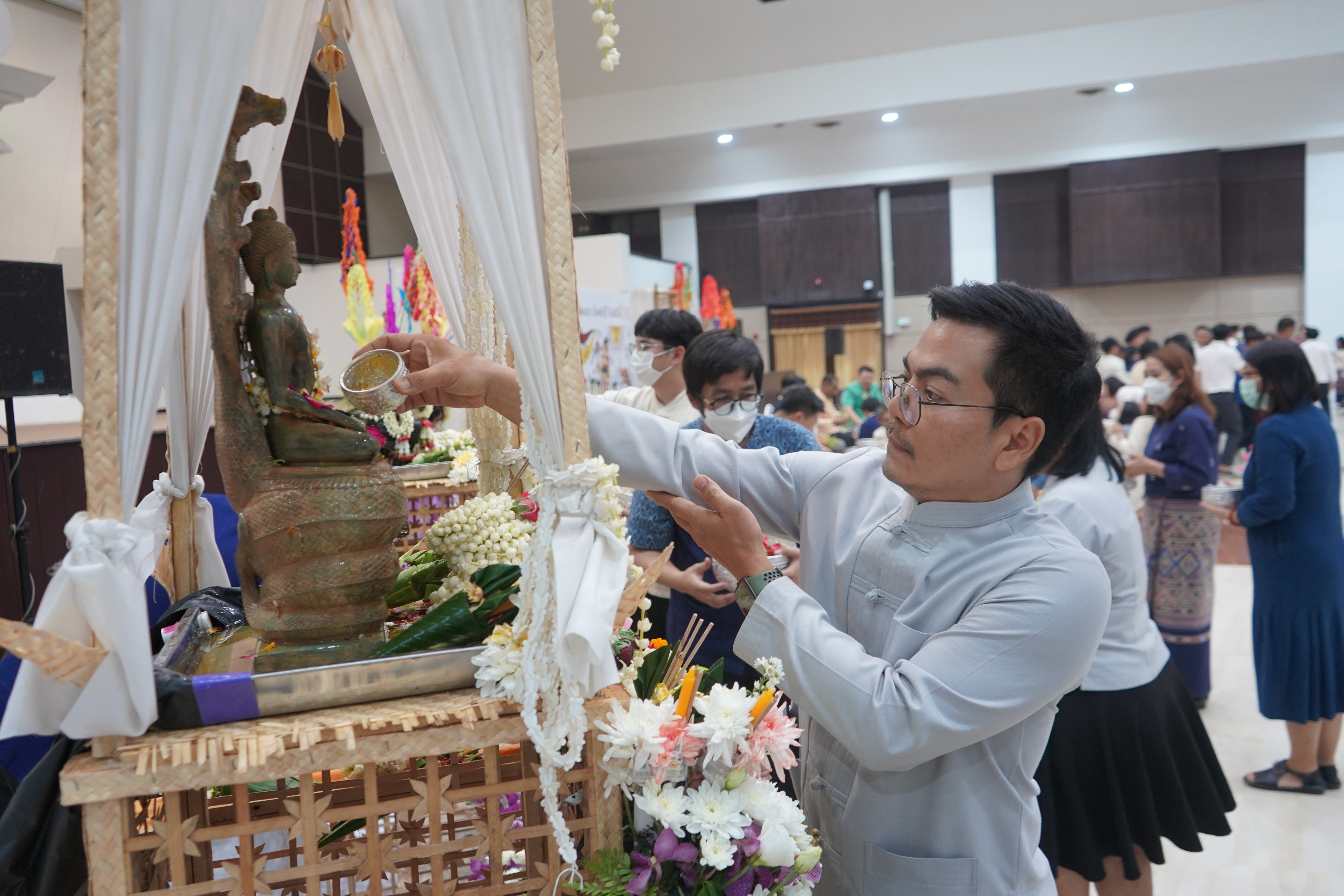 นอกจากนี้ ภายในงานยังมีสรงน้ำพระพุทธภุชคารักษ์ พระพุทธรูปประจำมหาวิทยาลัยพะเยา และสรงน้ำพระบรมรูปสมเด็จพระนเรศวรมหาราช เพื่อความเป็นสิริมงคล ตลอดจนกิจกรรมการแสดงออกถึงอัตลักษณ์วัฒนธรรมล้านนา อาทิ การแข่งขันลาบเมือง และริ้วขบวนดำหัว ที่สะท้อนถึงความร่วมแรงร่วมใจและความงดงามแห่งวิถีวัฒนธรรมท้องถิ่นอย่างวิจิตรและแฝงถึงความละเมียดละไมของเสน่ห์แห่งภูมิปัญญาไทยล้านนา