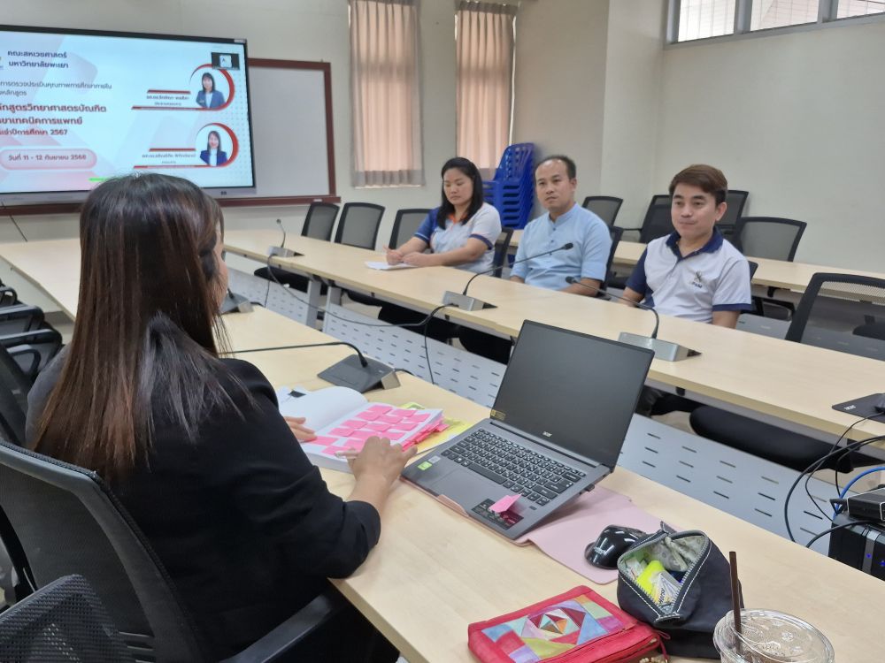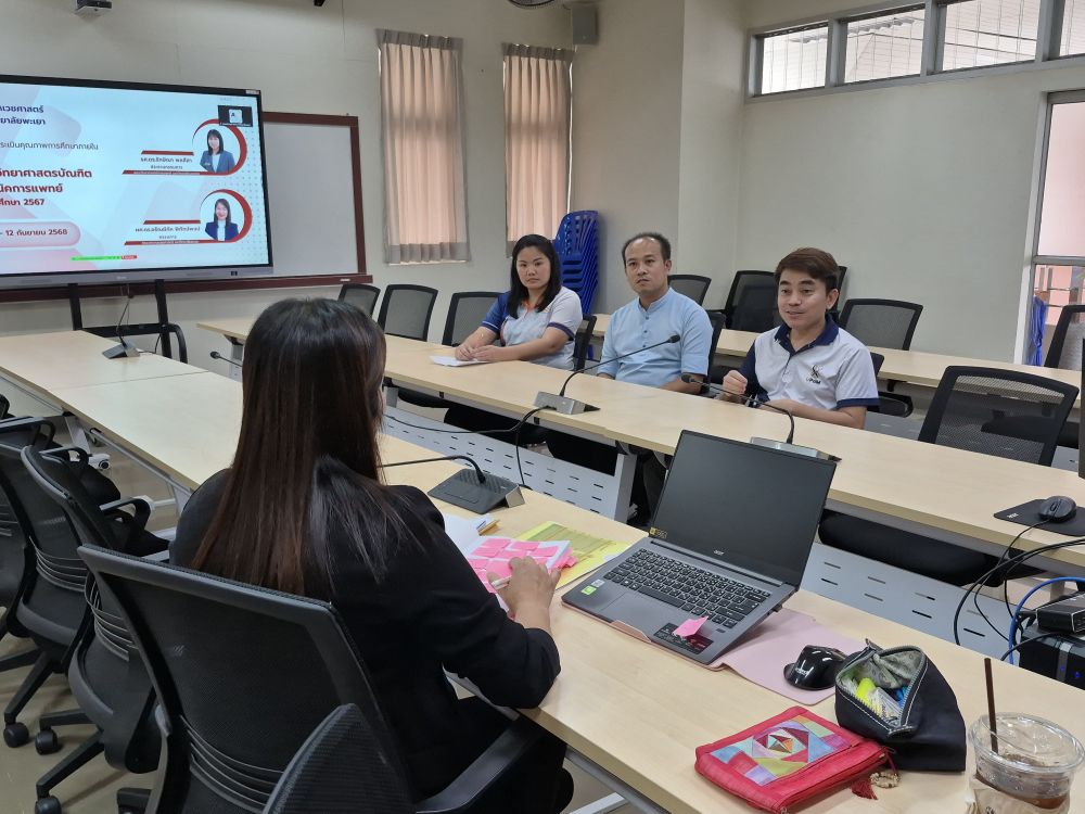 โครงการประเมินคุณภาพการศึกษาระดับหลักสูตร ประจําปีการศึกษา 2567 กิจกรรมประเมินคุณภาพการศึกษาภายในระดับหลักสูตรวิทยาศาสตรบัณฑิต สาขาเทคนิคการแพทย์ เมื่อวันที่ 11-12 กันยายน 2568 สาขาวิชาเทคนิคการแพทย์ คณะสหเวชศาสตร์ มหาวิทยาลัยพะเยา รับการตรวจประเมินการประกันคุณภาพการศึกษา ระดับหลักสูตร (AUN-QA) หลักสูตรวิทยาศาสตรบัณฑิต สาขาเทคนิคการแพทย์ ประจำปีการศึกษา 2567 ณ ห้องประชุมคณะสหเวชศาสตร์ ชั้น 3 นำโดย ผู้ช่วยศาสตราจารย์ ดร.เสริม สุรพินิจ ผู้ช่วยคณบดีฝ่ายพัฒนาวิชาชีพเทคนิคการแพทย์ กล่าวต้อนรับคณะกรรมการตรวจประเมิน พร้อมด้วย ผู้บริหารคณะ ประธานหลักสูตร คณาจารย์ และบุคลากร ตลอดจนผู้มีส่วนได้ส่วนเสีย เข้าร่วมให้ข้อมูลและนำเสนอรายงานการประเมินตนเอง (SAR) ของหลักสูตรวิทยาศาสตรบัณฑิต สาขาเทคนิคการแพทย์ โดยมีวัตถุประสงค์เพื่อรับการประเมินคุณภาพทางการศึกษาระดับหลักสูตร และนำผลการประเมินมาใช้ในการพัฒนาหลักสูตรการเรียนการสอน ให้บรรลุผลลัพธ์การเรียนรู้ของหลักสูตรต่อไป ทั้งนี้ได้รับเกียรติจาก รองศาสตราจารย์ ดร.รักษิณา พลสีสา อาจารย์คณะวิทยาศาสตร์การแพทย์มหาวิทยาลัยนเรศวร เป็นประธานกรรมการประเมิน และ ผู้ช่วยศาสตราจารย์ ดร.อรัณย์ภัค พิทักษ์พงษ์ คณะสาธารณสุขศาสตร์ มหาวิทยาลัยพะเยา เป็นกรรมการประเมิน