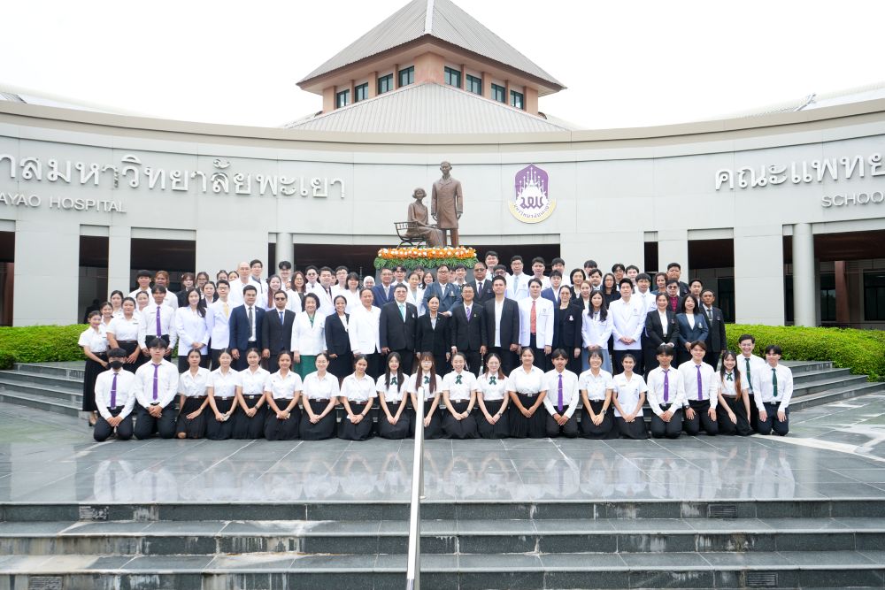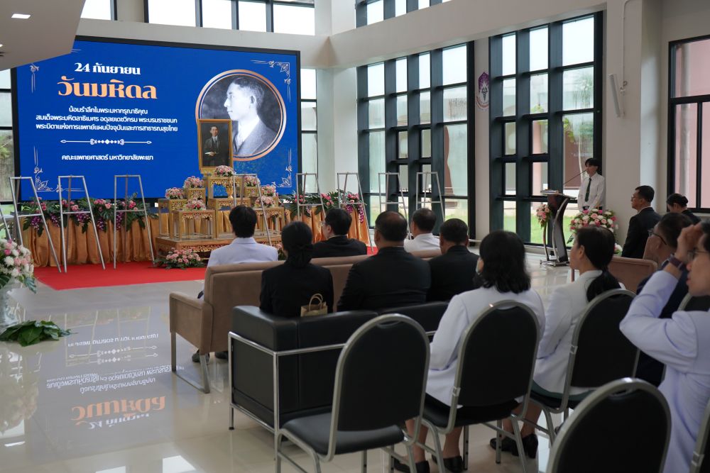 คณะสหเวชศาสตร์ ร่วมพิธีวางพวงมาลาและถวายราชสักการะ เนื่องในวันมหิดล ประจำปี 2568 เมื่อวันพุธที่ 24 กันยายน 2568 ผู้ช่วยศาสตราจารย์ ดร.พุทธิพงษ์ พลคำฮัก คณบดีคณะสหเวชศาสตร์ นำทีมบุคลากรและนิสิคคณะสหเวชศาสตร์ เข้าร่วมในพิธีวางพวงมาลาและถวายราชสักการะ เนื่องในวันคล้ายวันสวรรคตของสมเด็จพระมหิตลาธิเบศร อดุลยเดชวิกรม พระบรมราชชนก พระบิดาแห่งการแพทย์แผนปัจจุบันและสาธารณสุขไทย พร้อมด้วยคณะผู้บริหาร บุคลากร และตัวแทนนิสิต อีก 6 คณะในกลุ่มวิทยาศาสตร์สุขภาพ มหาวิทยาลัยพะเยา เข้าร่วมพิธีวางพวงมาลาดังกล่าว ณ คณะแพทยศาสตร์ โรงพยาบาลมหาวิทยาลัยพะเยา ทั้งนี้ได้รับเกียรติจาก รองศาสตราจารย์ ดร.สุภกร พงศบางโพธิ์ อธิการบดีมหาวิทยาลัยพะเยา เป็นประธานในพิธีวางพวงมาลาและถวายราชสักการะ อีกทั้งกล่าวถวายราชสดุดี เทิดพระเกียรติคุณน้อมรำลึกในพระมหากรุณาธิคุณอันหาที่สุดมิได้ การจัดพิธีในครั้งนี้ มีวัตถุประสงค์เพื่อให้บุคลากรและนิสิตได้น้อมรำลึกถึงพระมหากรุณาธิคุณของพระองค์ท่าน และตระหนักถึงความสำคัญของการรักษาและสืบทอดพระราชปณิธาน เพื่อนำไปสู่การพัฒนาการศึกษาและสาธารณสุขของประเทศให้เจริญก้าวหน้าต่อไป