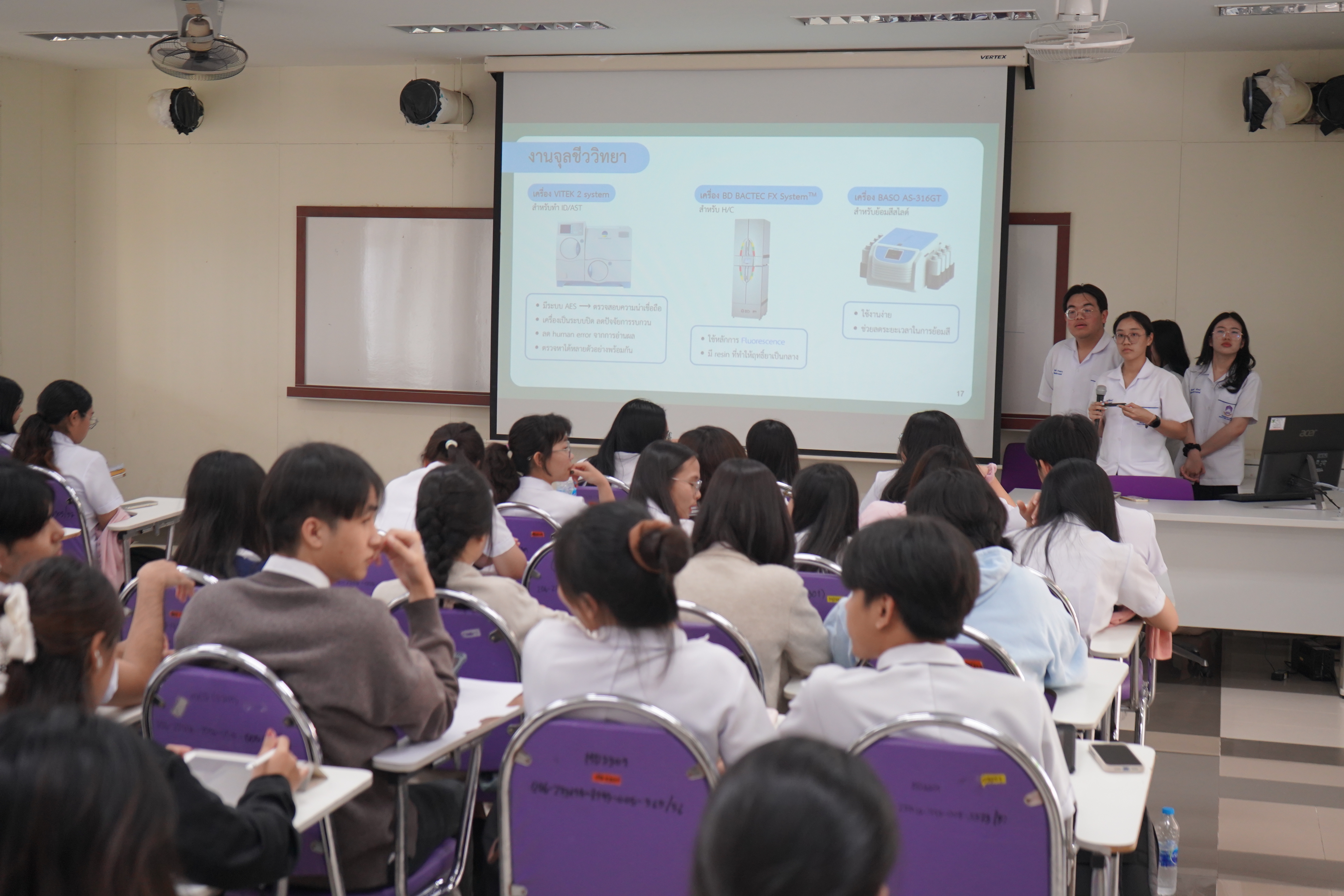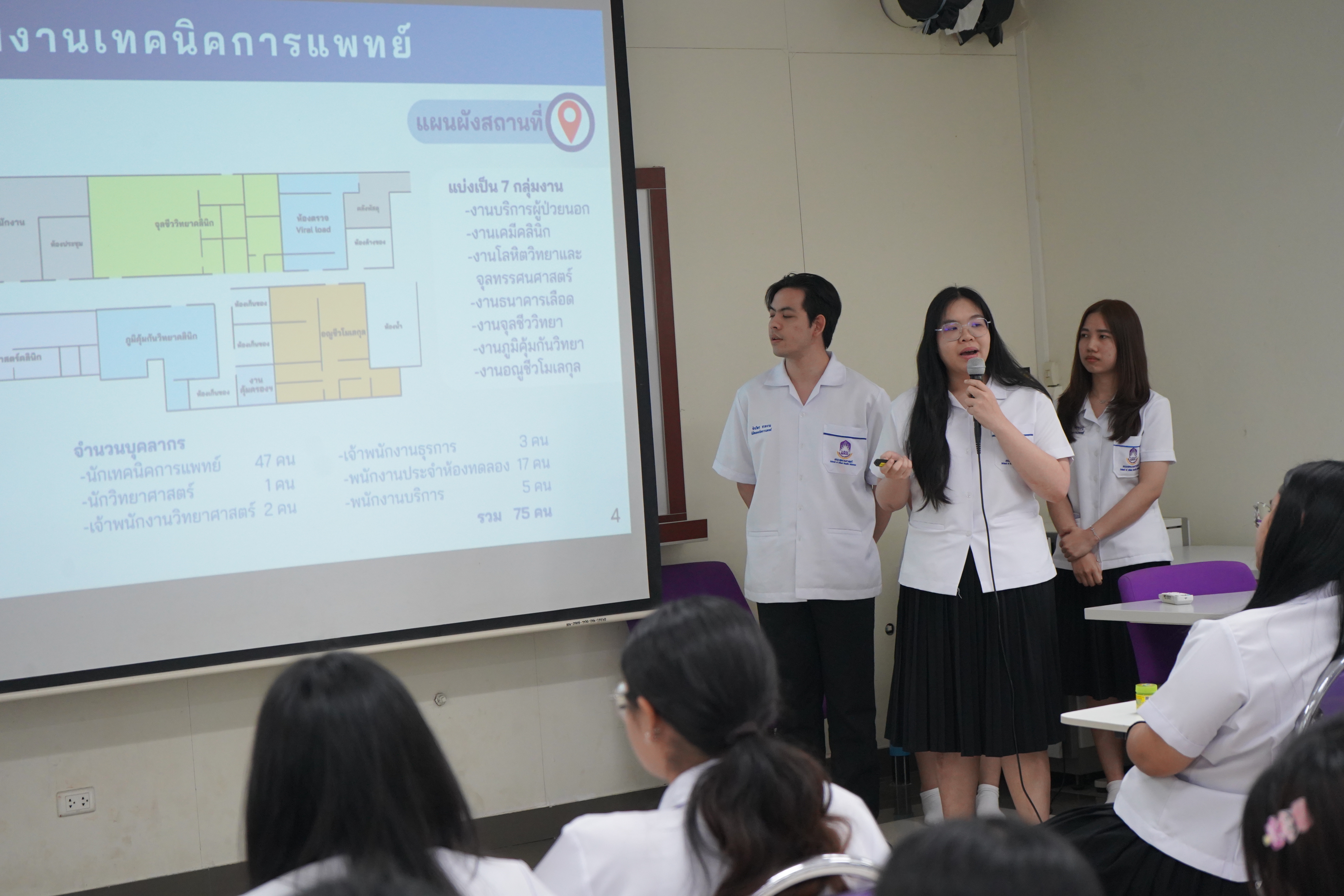 เมื่อวันจันทร์ที่ 16 กุมภาพันธ์ 2569 สาขาวิชาเทคนิคการแพทย์ คณะสหเวชศาสตร์ มหาวิทยาลัยพะเยา ได้จัดกิจกรรม “การนำเสนอผลการฝึกงานทางห้องปฏิบัติการทางการแพทย์ นิสิตชั้นปีที่ 4” ในวันจันทร์ที่ 16 กุมภาพันธ์ 2569 เพื่อเป็นเวทีวิชาการในการสะท้อนผลลัพธ์การเรียนรู้เชิงสมรรถนะ และประเมินความพร้อมก่อนเข้าสู่การประกอบวิชาชีพตามมาตรฐานที่กำหนดโดยหน่วยงานวิชาชีพที่เกี่ยวข้อง โดยมี ผศ.ดร.ณัฏฐพักตร์ ศีลวัตธำรง ทำหน้าที่เป็นผู้ดำเนินกิจกรรม